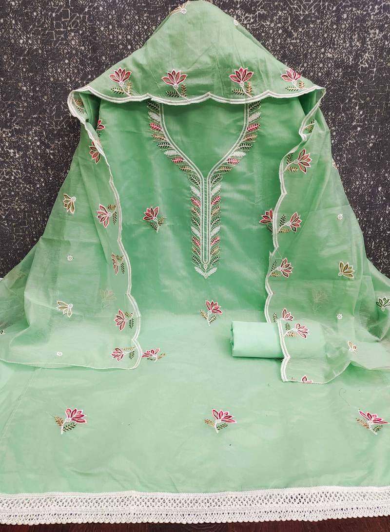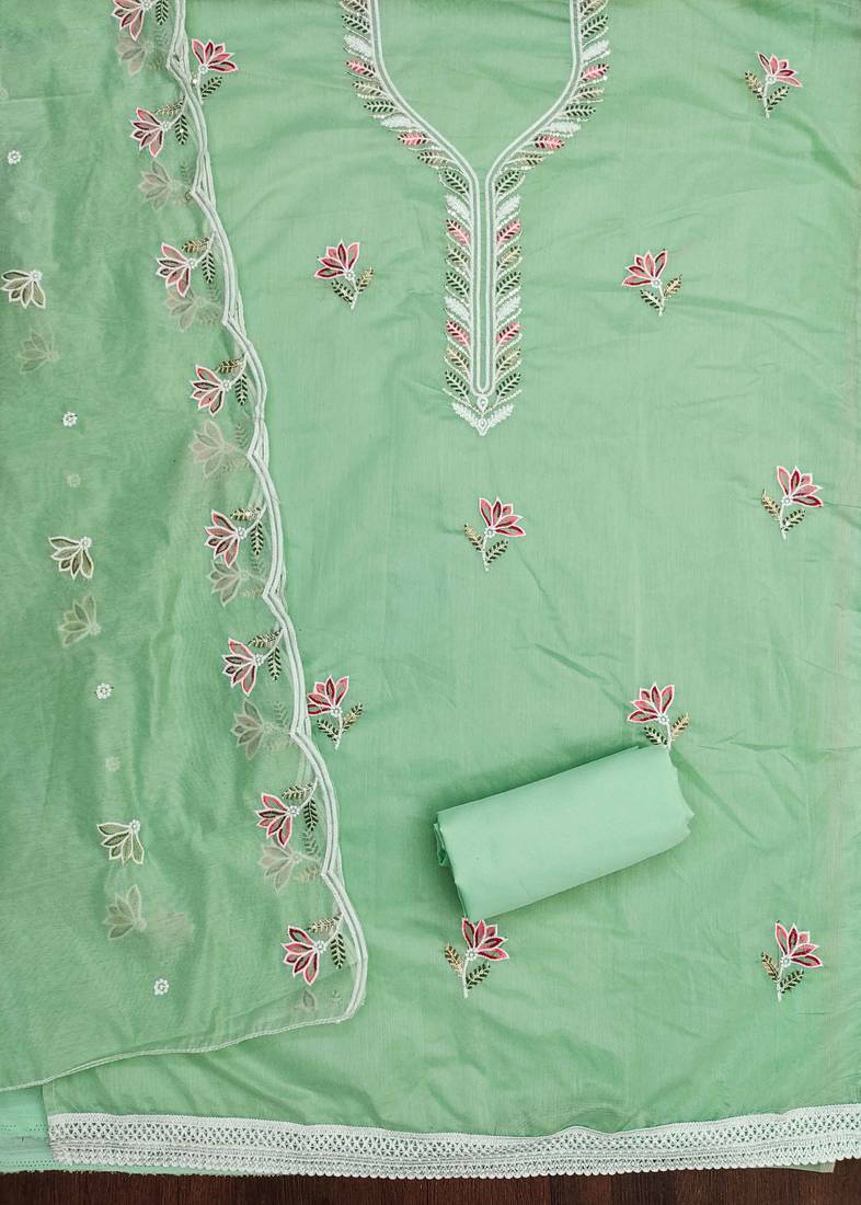 | Product Description | Statement Heavy Thread Sequence Embroidery And Fancy Border With Embroidered Dupatta Straight Style 2.00 Mtr Unstitched Dress Material Top Of Light Green Colour Chanderi Cotton Fabric With 2 Mtr Micro Crape As Lining Inner Fabric Also Including 3.60 Mtr Unstiched Bottom Material Of Light Green Colour Micro Crape Fabric With 2.00 Mtr Dupatta Of Light Green Colour Chanderi Cotton Fabric By Shadow & Saining Brand |