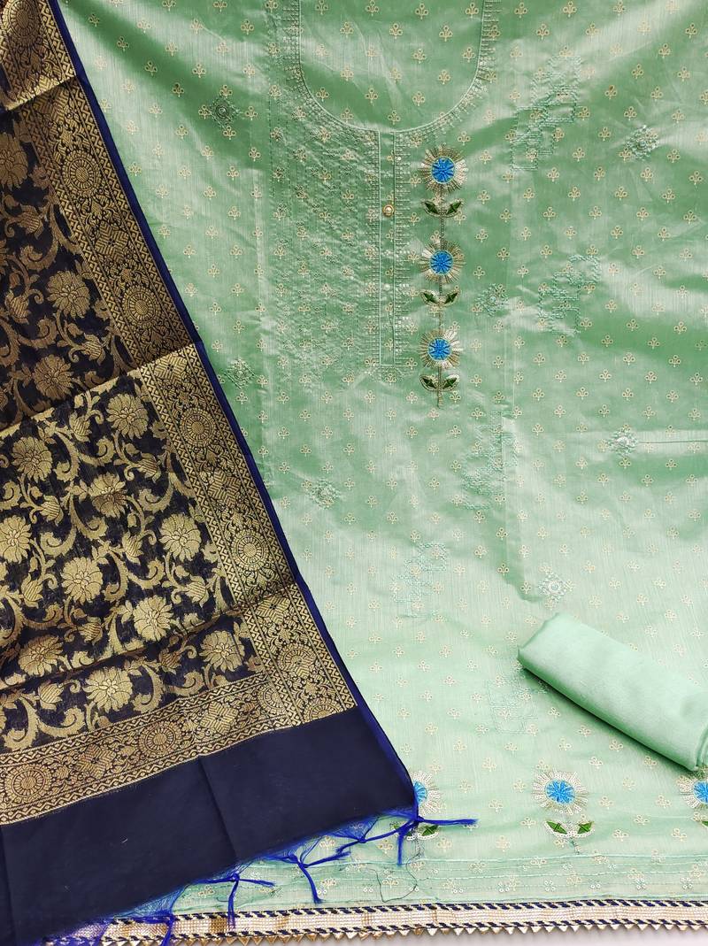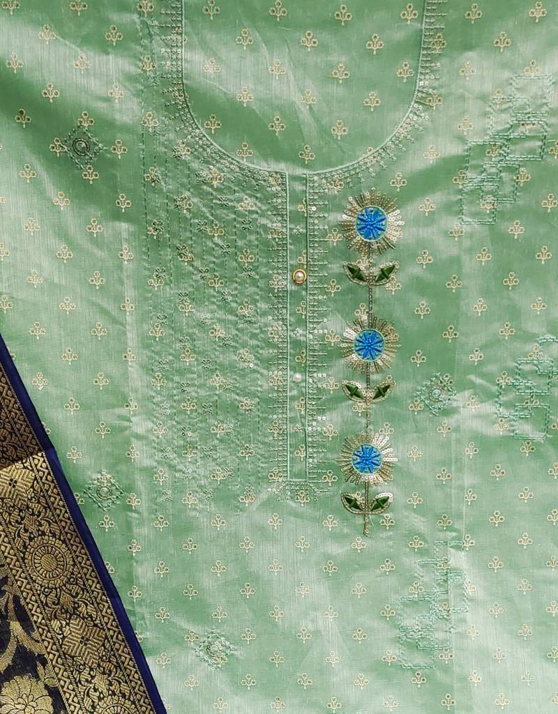 | Product Description | Heavy Sequin Work And Fancy Border With Weaving Dupatta Straight Style 1.80 Mtr Unstitched Dress Material Top Of Light Green Colour Modal Chanderi Cotton Fabric Suggestable Quarter Style Sleeves And Round Style Neck Also Including 2.00 Mtr Chudidar Style Bottom Material Of Light Green Colour Santoon Fabric With 2.00 Mtr Dupatta Of Blue Colour Banarasi Jacquard Fabric |