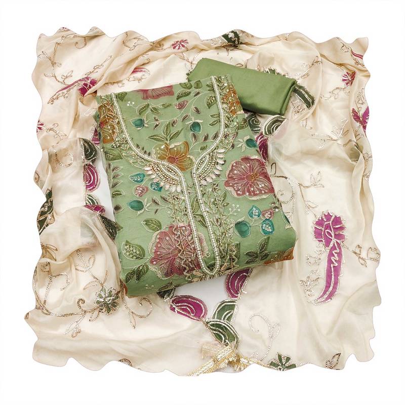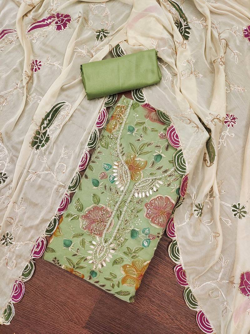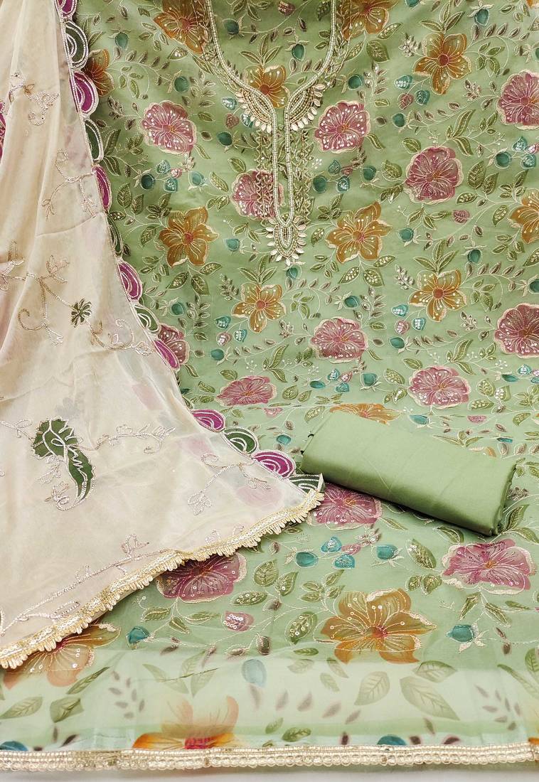 | Product Description | Limited Edition Heavy Thread Sequence Embroidered And Fancy Border With Designer Burs Embroidered Dupatta Straight Style 2.00 Mtr Unstitched Dress Material Top Of Light Green Colour Viscose Organja Fabric With 2 Mtr Dull Santoon As Lining Inner Fabric Also Including 3.80 Mtr Unstiched Bottom Material Of Light Green Colour Dull Santoon Fabric With 2.10 Mtr Dupatta Of Multi Colour Nazneen Fabric By Shadow & Saining Brand |