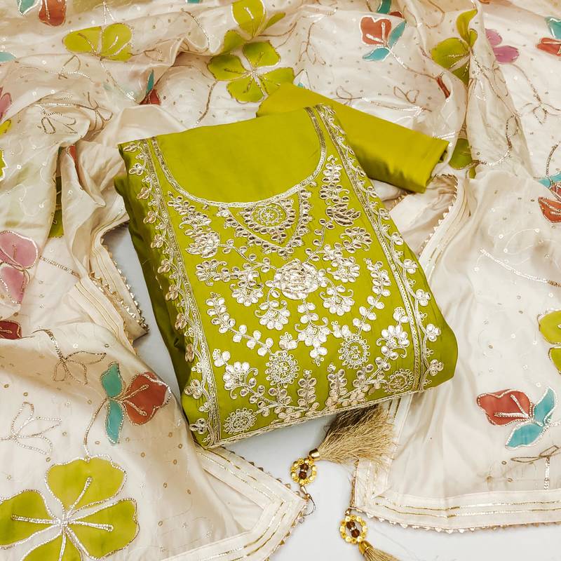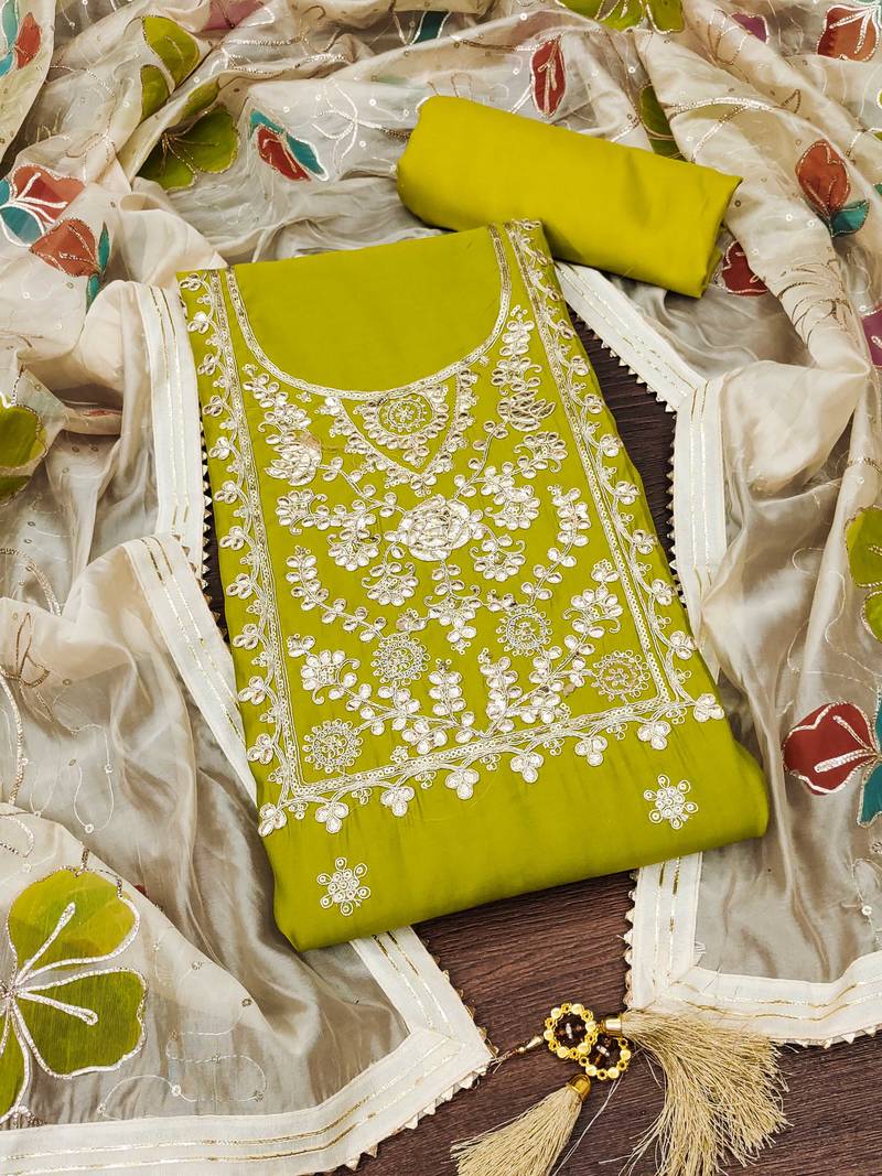 | Product Description | Preety Heavy Embroidery Work Top With Fancy Sequence And Digital Print Dupatta Work Straight Style 2.20 Mtr Unstitched Dress Material Top Of Lime Colour Heavy Roman Silk Fabric Also Including 2.40 Mtr Chudidar Style Bottom Piece Material Of Lime Colour Heavy Santoon Fabric With 2.20 Mtr Dupatta Of Multi Colour Heavy Organza Fabric By Shadow & Saining Brand |