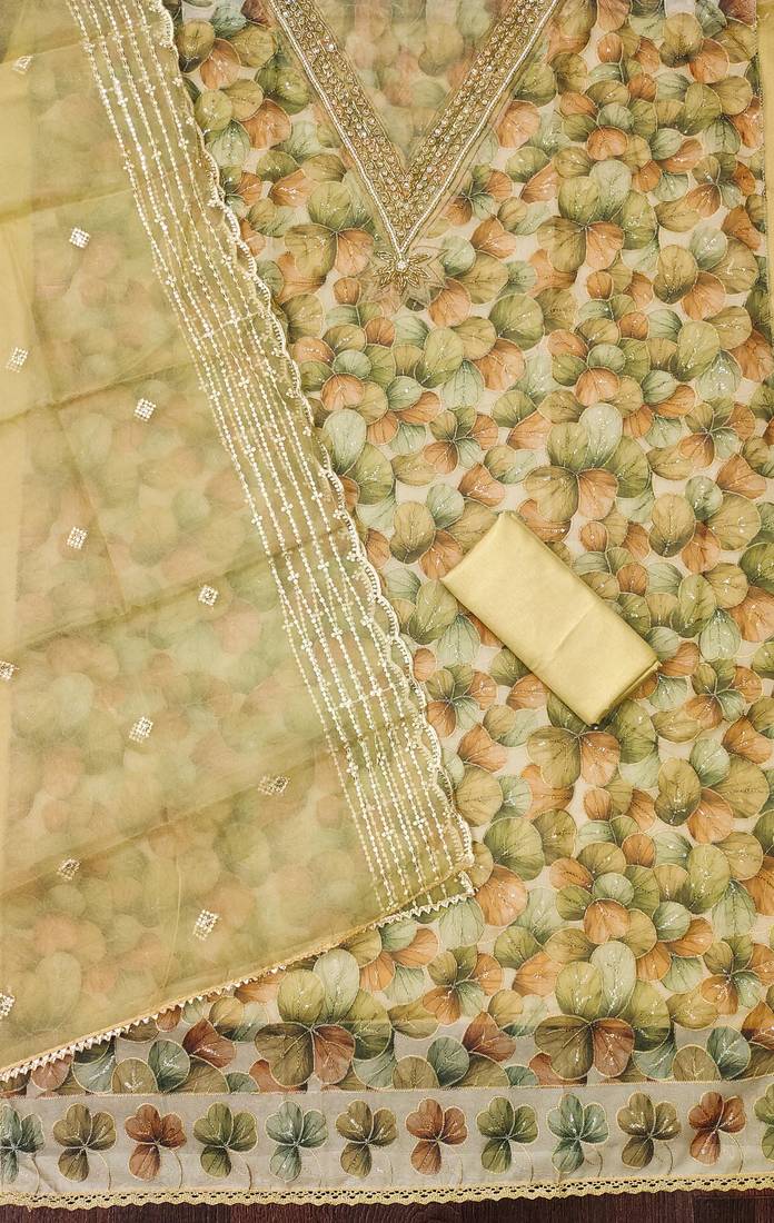 | Product Name | Lime Green Color Sequence Heavy Organza Straight Churidar Dress Material | |