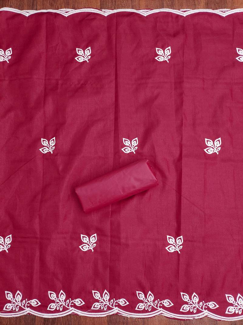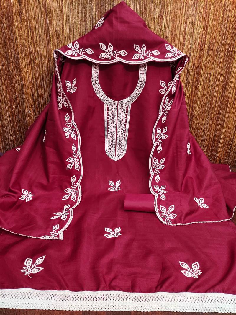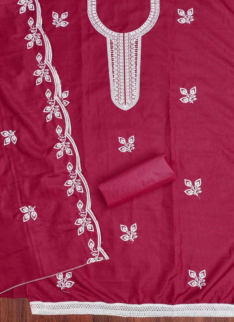 Maroon embroidered cotton semi stitched churidar dress-materials