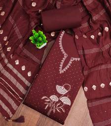 Maroon embroidered cotton semi stitched churidar dress-materials