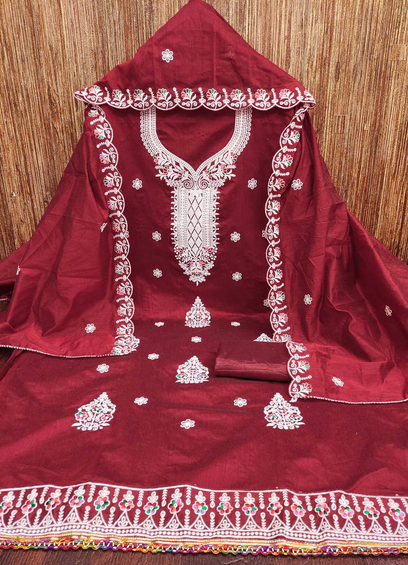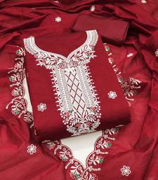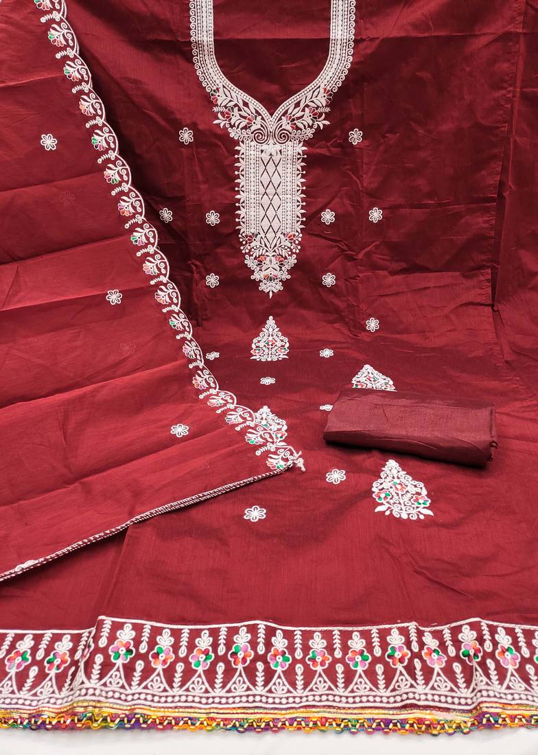 Maroon embroidered cotton semi stitched churidar dress-materials