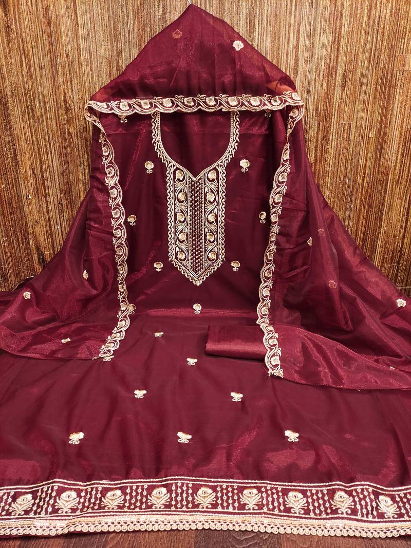 | Product Description | Exclusive Heavy Thread Embroidered And Fancy Border With Designer Embroidered Dupatta Straight Style 1.80 Mtr Unstitched Dress Material Top Of Maroon Colour Twill Net Fabric With 2 Mtr Santoon As Lining Inner Fabric Also Including 3.60 Mtr Unstiched Bottom Material Of Maroon Colour Santoon Fabric With 2.10 Mtr Dupatta Of Maroon Colour Twill Net Fabric By Shadow & Saining Brand |