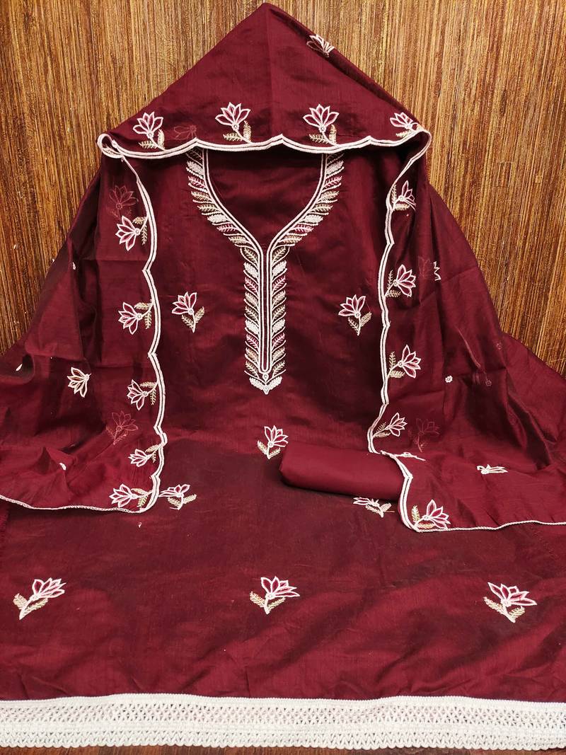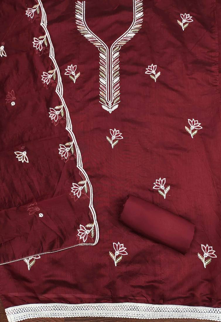 | Product Description | Trendsetting Heavy Thread Sequence Embroidery And Fancy Border With Embroidered Dupatta Straight Style 2.00 Mtr Unstitched Dress Material Top Of Maroon Colour Chanderi Cotton Fabric With 2 Mtr Micro Crape As Lining Inner Fabric Also Including 3.60 Mtr Unstiched Bottom Material Of Maroon Colour Micro Crape Fabric With 2.00 Mtr Dupatta Of Maroon Colour Chanderi Cotton Fabric By Shadow & Saining Brand |