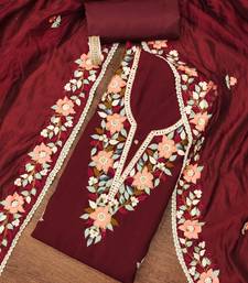 Maroon thread embroidery silk blend semi stitched churidar dress-materials