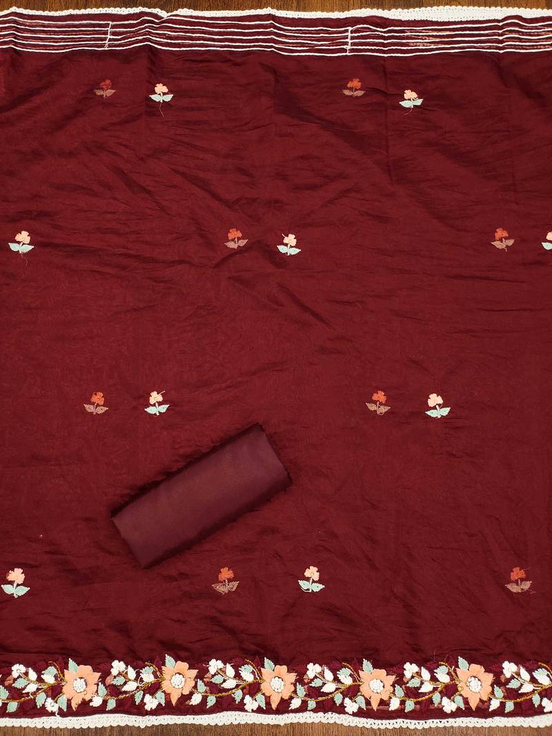 | Product Name | Maroon Thread Embroidery Silk Blend Semi Stitched Churidar Dress Materials | |