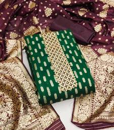 Mehandi green color weaving banarasi jacquard straight churidar dress material semi stitched