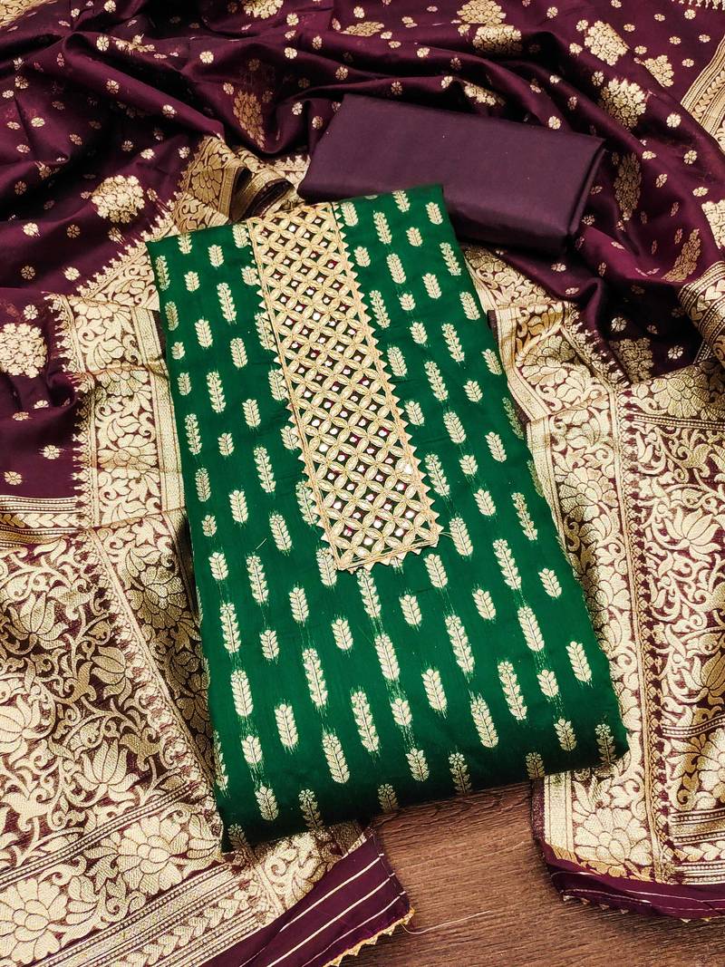 | Product Name | Mehandi Green Color Weaving Banarasi Jacquard Straight Churidar Dress Material | |