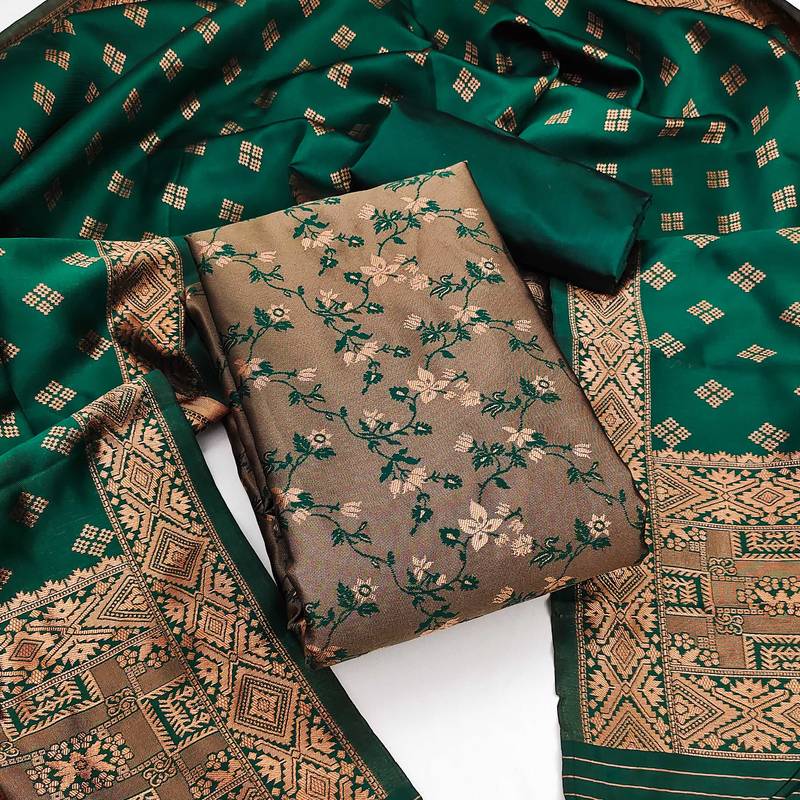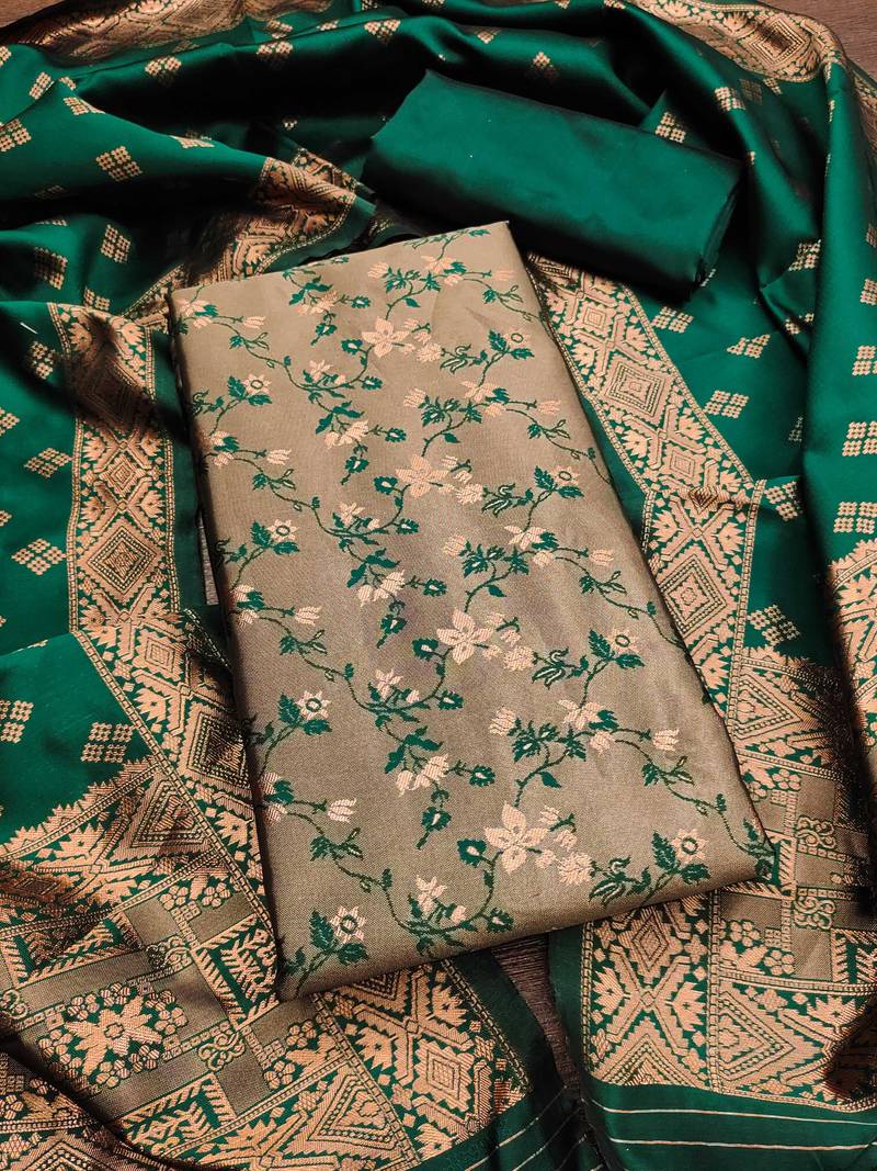Mehendi woven silk blend unstitched churidar dress-materials