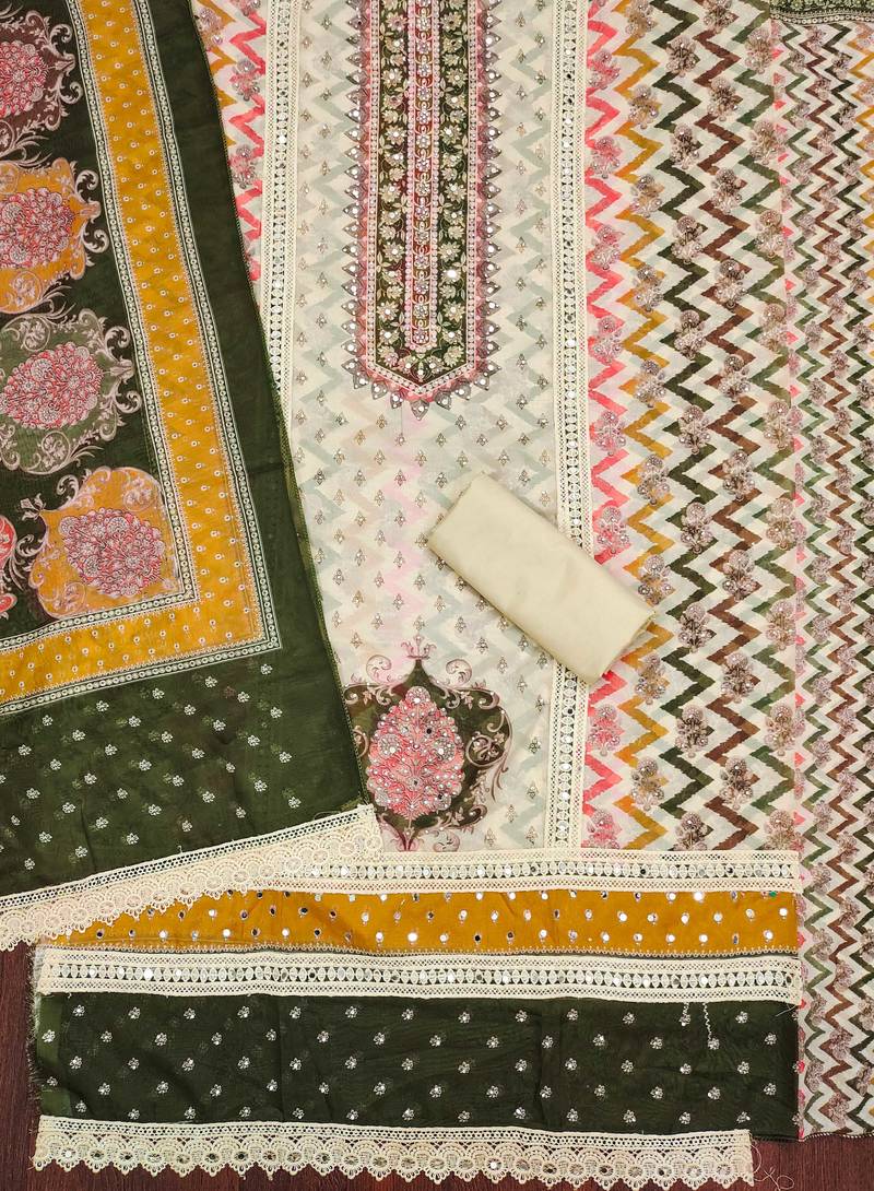 | Product Description | Appealing Stylish Mirror Daimond Work With Designer Digital Print And Thread Lace Work With Fancy Digital Print Dupatta Work Straight Style 2.20 Mtr Unstitched Dress Material Top Of Multi Colour Heavy Organza Fabric With 2 Mtr Heavy Santoon As Lining Inner Fabric Also Including 3.70 Mtr Unstiched Bottom Material Of Cream Colour Heavy Santoon Fabric With 2.25 Mtr Dupatta Of Mehandi Green Colour Heavy Organza Fabric By Shadow & Saining Brand |