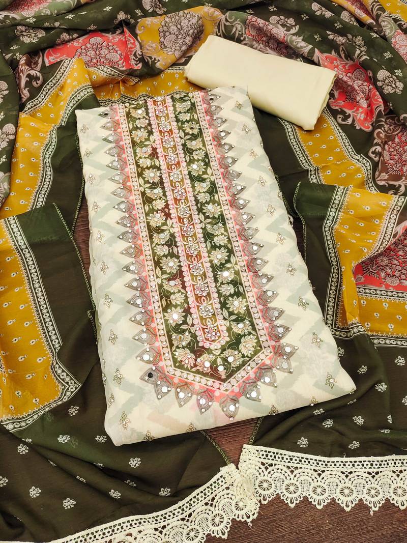 | Product Description | Designer Stylish Mirror Daimond Work With Designer Digital Print And Thread Lace Work With Fancy Digital Print Dupatta Work Straight Style 2.20 Mtr Unstitched Dress Material Top Of Multi Colour Heavy Organza Fabric With 2 Mtr Heavy Santoon As Lining Inner Fabric Also Including 3.70 Mtr Unstiched Bottom Material Of Cream Colour Heavy Santoon Fabric With 2.25 Mtr Dupatta Of Mehandi Green Colour Heavy Organza Fabric By Shadow & Saining Brand |