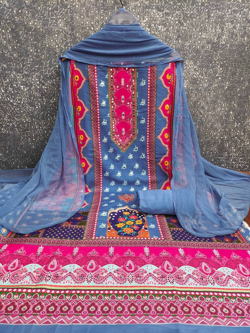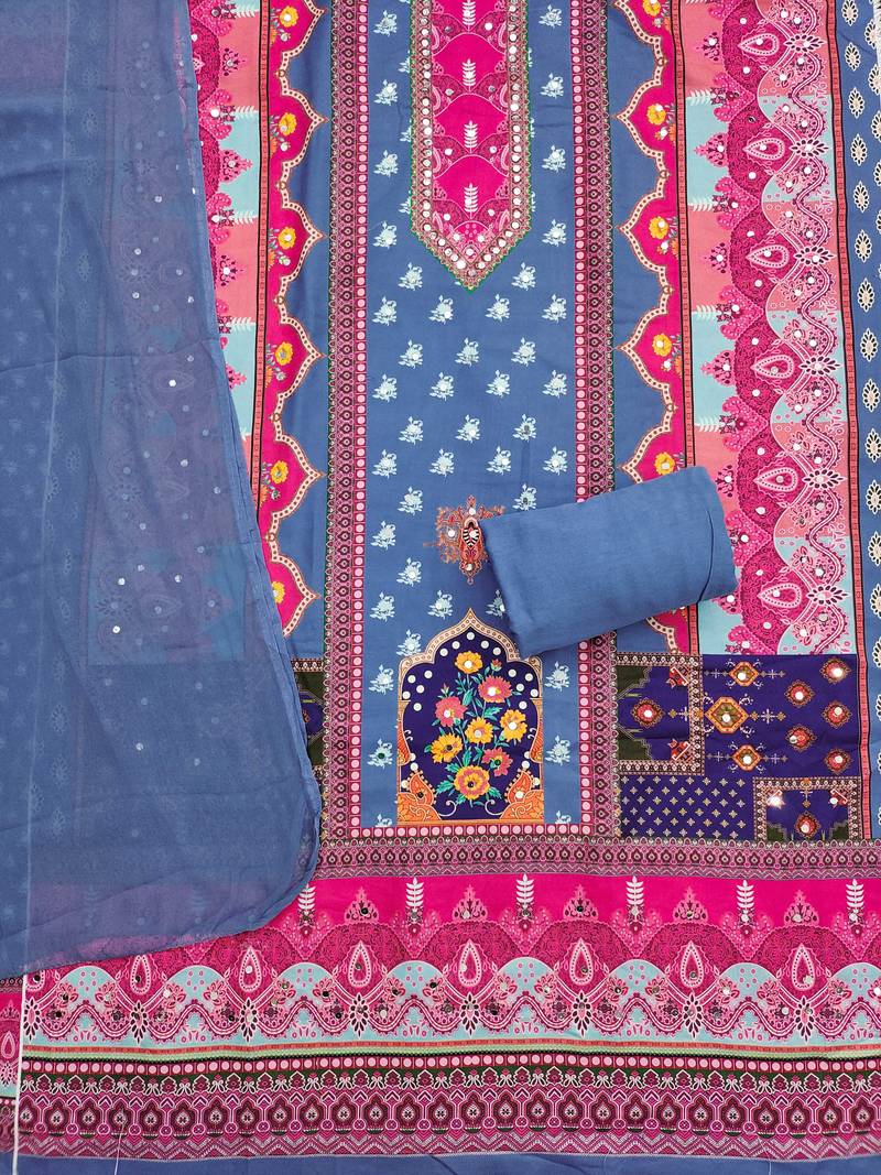 | Product Description | Signature Designer Print And Mirror Work With Stylish Dupatta Straight Style 2.00 Mtr Unstitched Dress Material Top Of Multi Colour Rayon Fabric Also Including 2.00 Mtr Chudidar Style Bottom Piece Material Of Grey Colour Rayon Fabric With 2.00 Mtr Dupatta Of Grey Colour Nazneen Fabric By Shadow & Saining Brand |