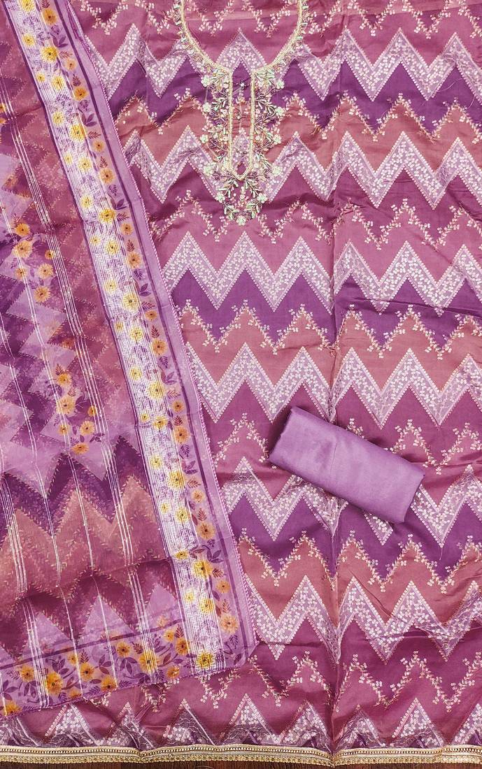 | Product Description | Exclusive Stylish Sequence Work With Designer Position Print And Hand Work With Heavy Sequence And Digital Print Dupatta Work Straight Style 1.85 Mtr Unstitched Dress Material Top Of Multi Colour Heavy Organza Fabric With 2 Mtr Heavy Santoon As Lining Inner Fabric Also Including 3.60 Mtr Unstiched Bottom Material Of Purple Colour Heavy Santoon Fabric With 2.15 Mtr Dupatta Of Multi Colour Heavy Organza Fabric By Shadow & Saining Brand |