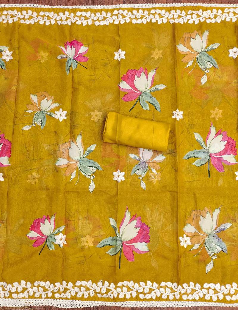 | Product Description | Stylish Designer Printed Work With Heavy Thread Embrodiery Neck And Border Work And Fancy Printed & Thread Embrodiery Dupatta Work Straight Style 2.25 Mtr Unstitched Dress Material Top Of Mustered Colour Heavy Organza Fabric With 2 Mtr Heavy Santoon As Lining Inner Fabric Also Including 4.00 Mtr Unstiched Bottom Material Of Mustered Colour Heavy Santoon Fabric With 2.20 Mtr Dupatta Of Multi Colour Heavy Organza Fabric By Shadow & Saining Brand |