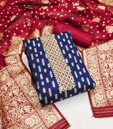 Navy blue color weaving banarasi jacquard straight churidar dress material semi stitched