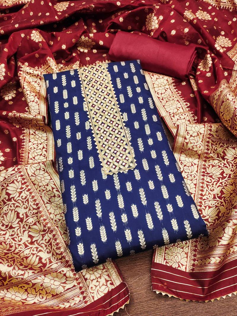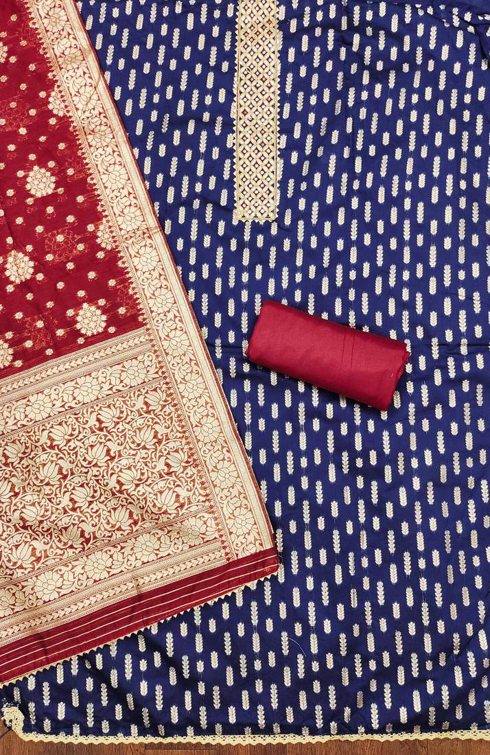 | Product Name | Navy Blue Color Weaving Banarasi Jacquard Straight Churidar Dress Material | |