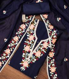 Navy-blue thread embroidery silk blend semi stitched churidar dress-materials