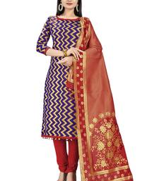 Navy-blue woven silk blend unstitched churidar dress-materials