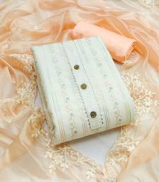 Off white color embroidered heavy modal chanderi straight churidar dress material semi stitched