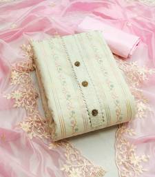 Off white color embroidered heavy modal chanderi straight churidar dress material semi stitched