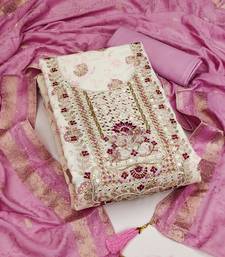 Off white color weaving heavy modal chanderi straight churidar dress material semi stitched