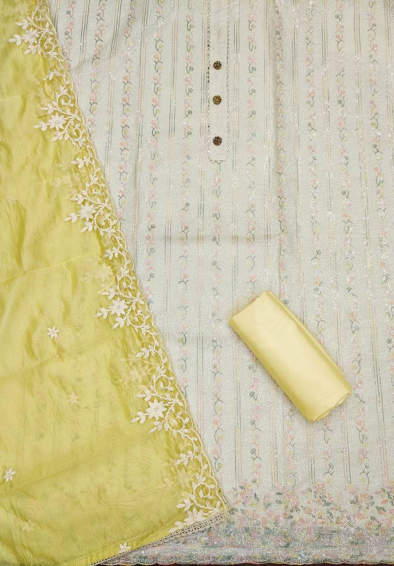 | Product Description | Preety Heavy Multi Thread Sequence Embroidery And Print Work With Thread Work Dupatta Straight Style 2.15 Mtr Unstitched Dress Material Top Of Off White Colour Heavy Modal Chanderi Fabric With 2 Mtr Heavy Santoon As Lining Inner Fabric Also Including 4.00 Mtr Unstiched Bottom Material Of Yellow Colour Heavy Santoon Fabric With 2.20 Mtr Dupatta Of Lime Colour Heavy Organja Fabric By Shadow & Saining Brand |