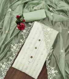 Off-white embroidered chanderi semi stitched churidar dress-materials