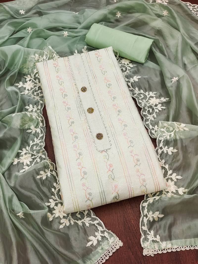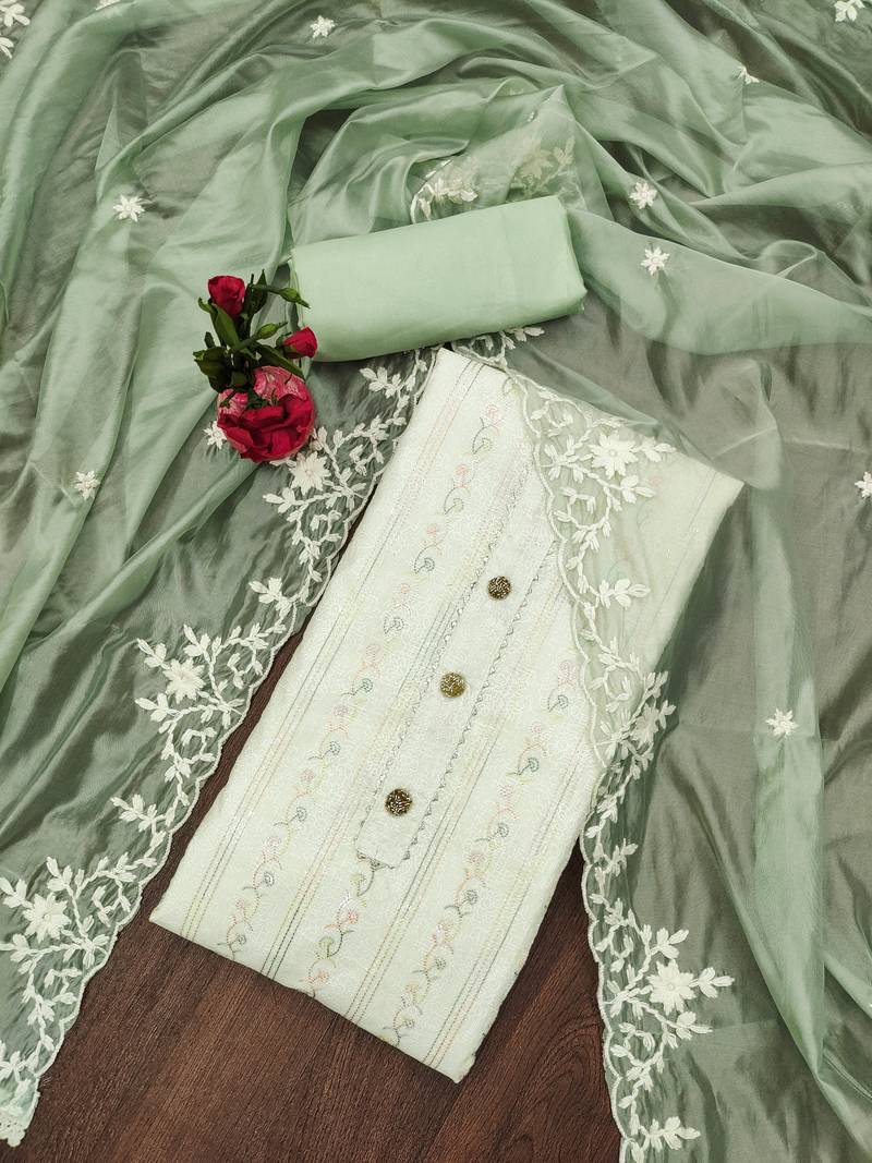 | Product Description | Classic Heavy Multi Thread Sequence Embroidery And Print Work With Thread Work Dupatta Straight Style 2.15 Mtr Unstitched Dress Material Top Of Off White Colour Heavy Modal Chanderi Fabric With 2 Mtr Heavy Santoon As Lining Inner Fabric Also Including 4.00 Mtr Unstiched Bottom Material Of Pista Green Colour Heavy Santoon Fabric With 2.20 Mtr Dupatta Of Pista Green Colour Heavy Organja Fabric By Shadow & Saining Brand |