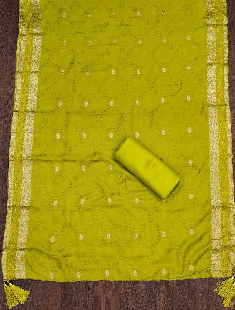 | Product Description | Awesome Designer Weaving With Foil Work Along Embrodiery And Handwork Neck With Fancy Sequence And Weaving Work Dupatta Straight Style 1.90 Mtr Unstitched Dress Material Top Of Off White Colour Heavy Modal Chanderi Fabric With 2 Mtr Heavy Santoon As Lining Inner Fabric Also Including 4.00 Mtr Unstiched Bottom Material Of Green Colour Heavy Santoon Fabric With 2.20 Mtr Dupatta Of Green Colour Chinon Silk Fabric By Shadow & Saining Brand |