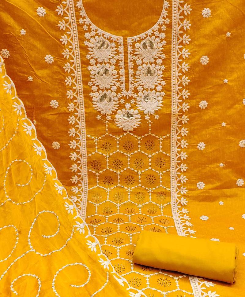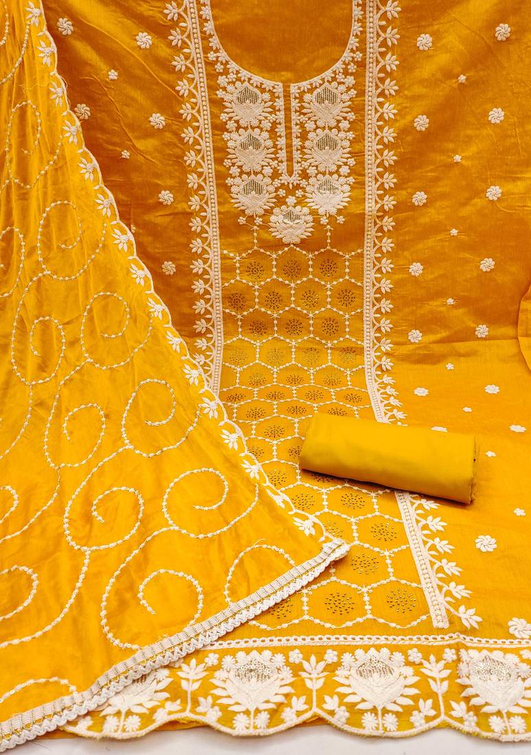 | Product Name | Orange Chanderi Silk Embroidered Dress Material | |