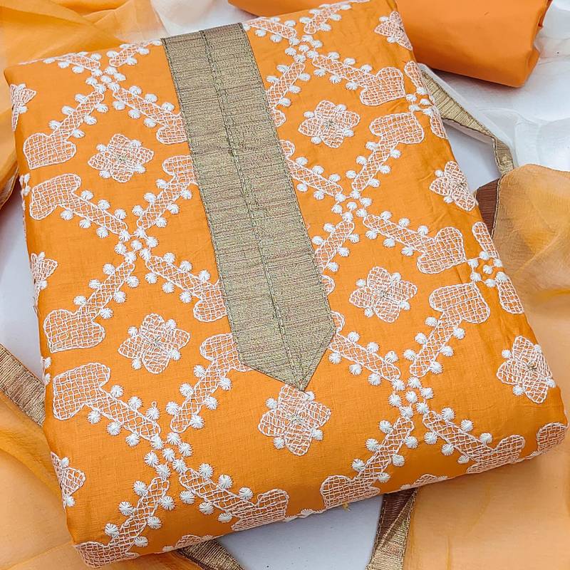 | Product Name | Orange Cotton Embroidered Dress Material | |
