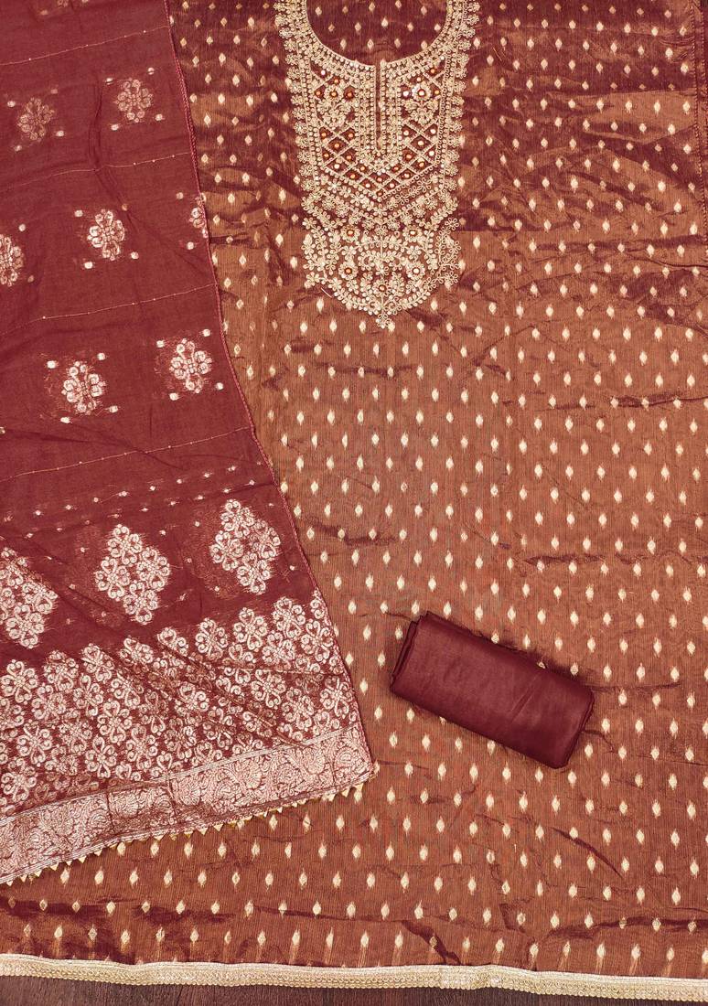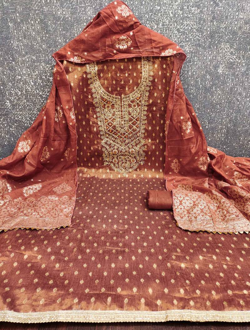 | Product Description | Festive Ready Designer Weaving Handwork And Fancy Border With Stylish Woven Dupatta Straight Style 2.00 Mtr Unstitched Dress Material Top Of Rust Colour Simmar Fabric With 2 Mtr Santoon As Lining Inner Fabric Also Including 3.60 Mtr Unstiched Bottom Material Of Rust Colour Santoon Fabric With 2.00 Mtr Dupatta Of Rust Colour Jacquard Fabric By Shadow & Saining Brand |