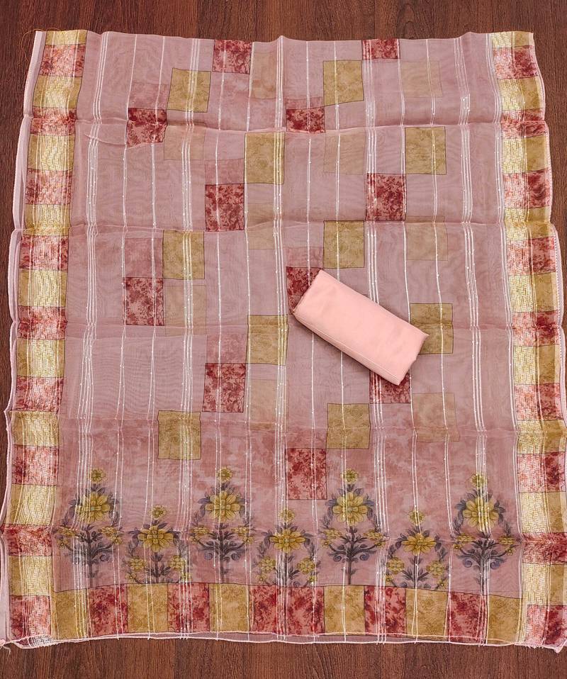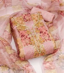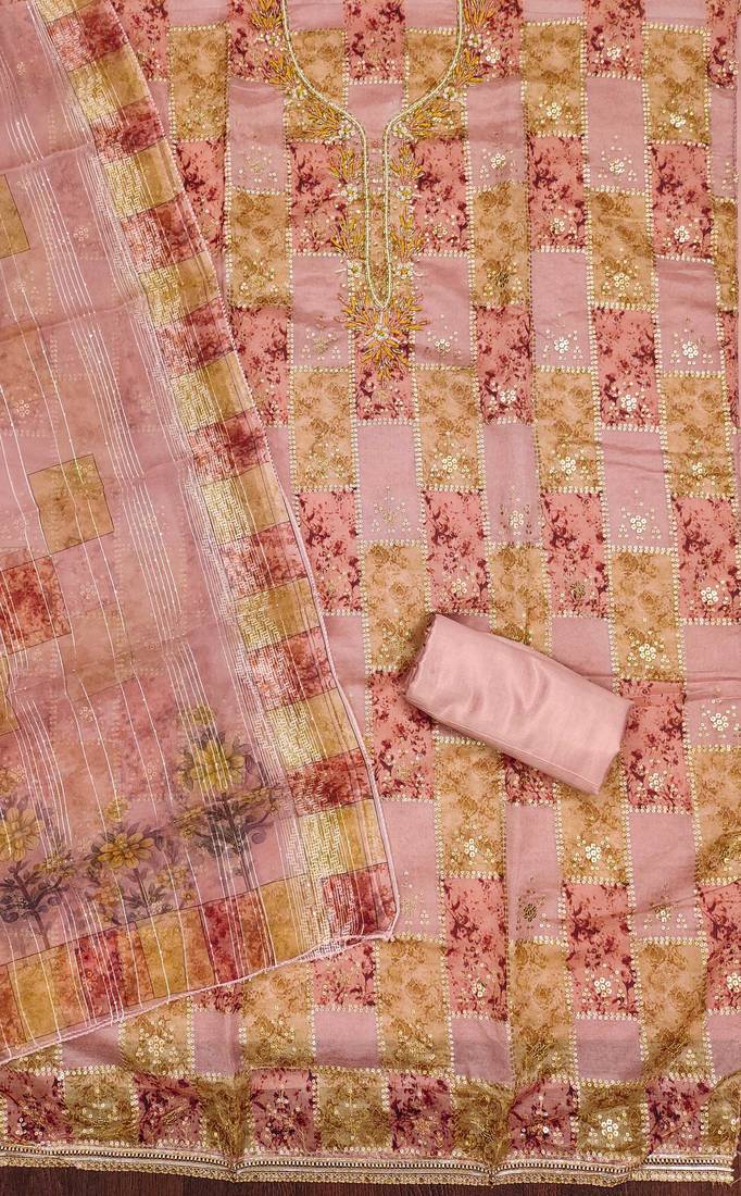Peach color sequence heavy organza straight churidar dress material semi stitched