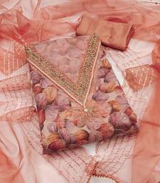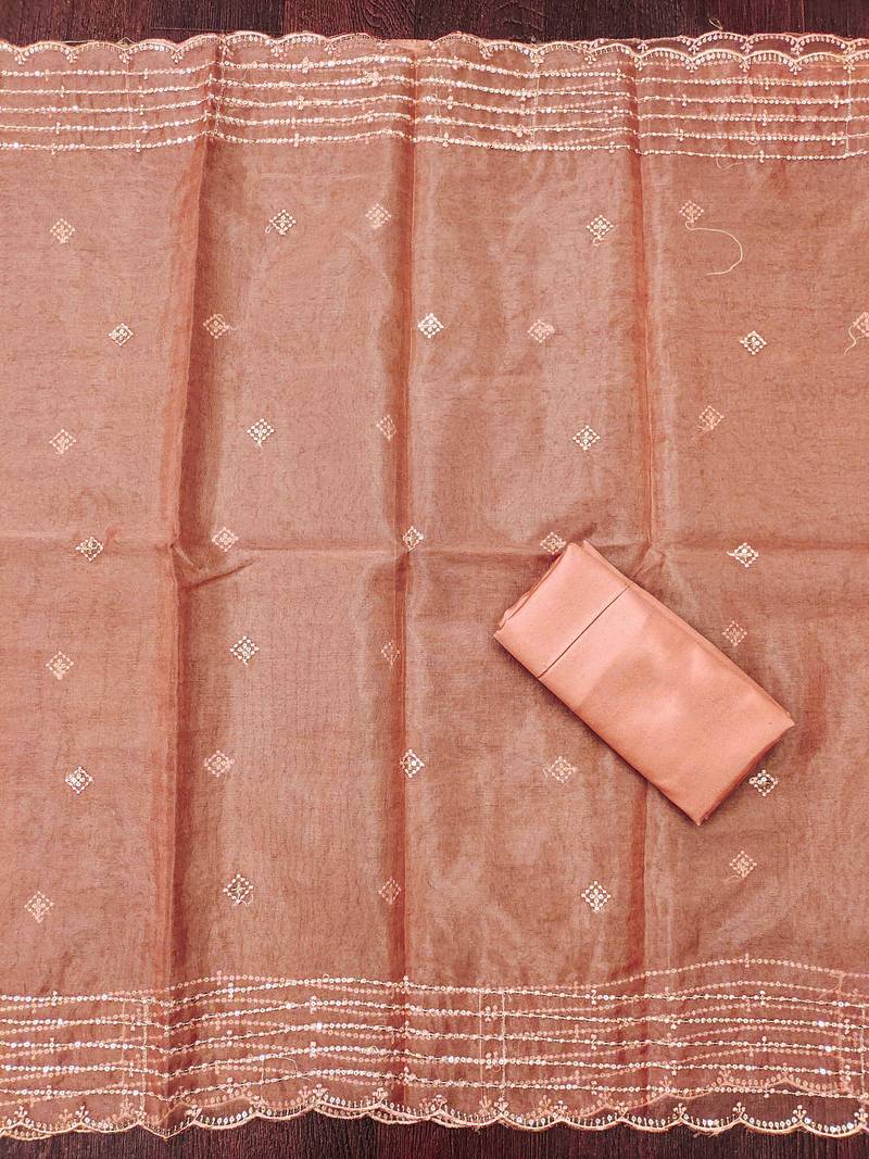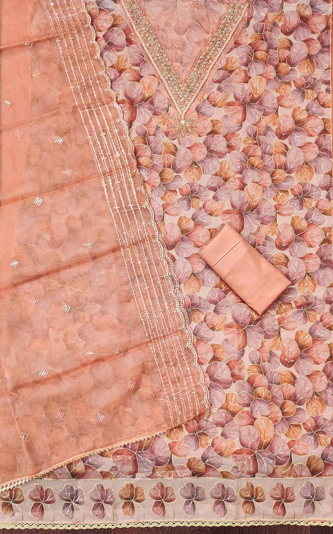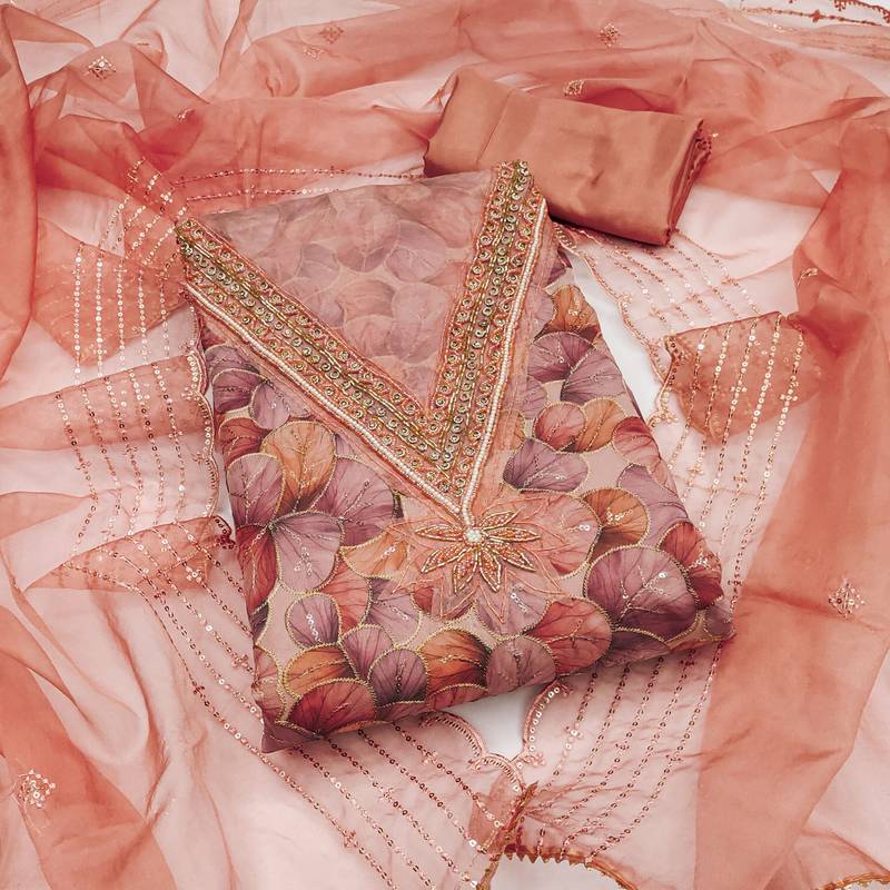 Peach color sequence heavy organza straight churidar dress material semi stitched
