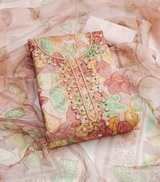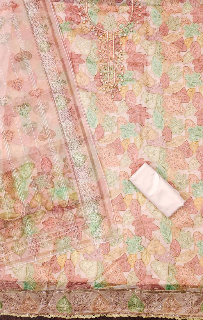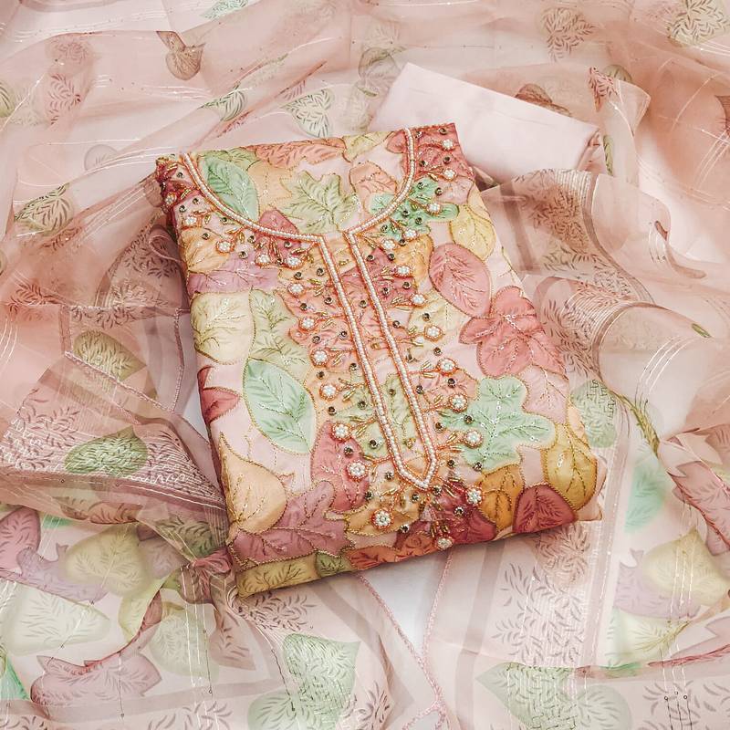 Peach color sequence heavy organza straight churidar dress material semi stitched