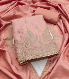 Product Name Peach Embroidered Cotton Semi Stitched Churidar Dress Materials