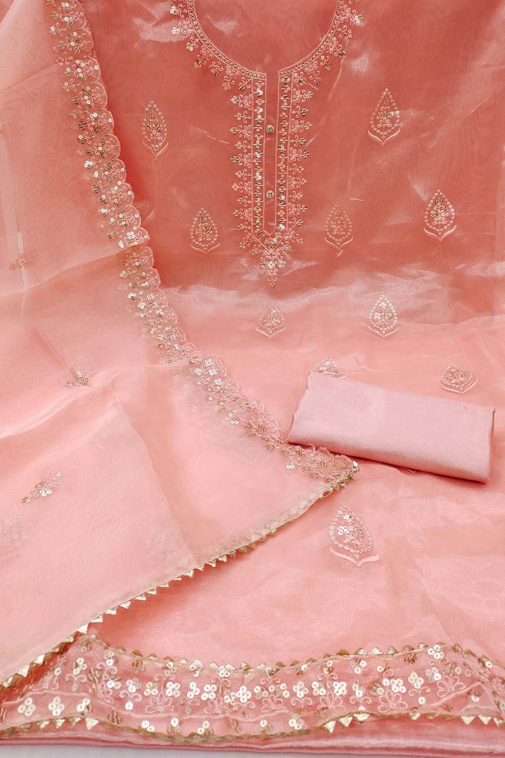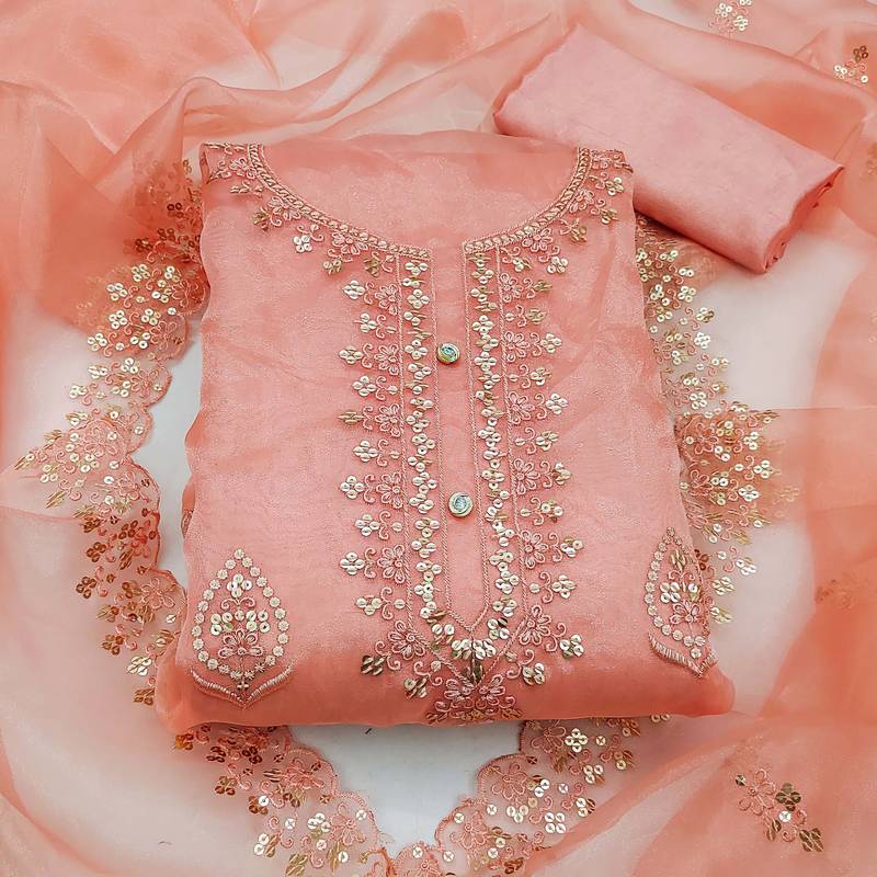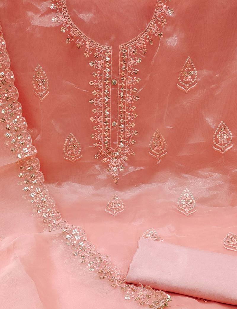 | Product Name | Peach Organza Embroidered Dress Material | |