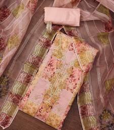 Peach sequins organza semi stitched churidar dress-materials