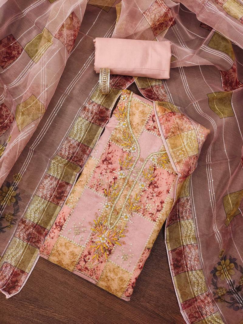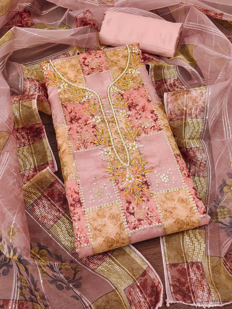 | Product Name | Peach Sequins Organza Semi Stitched Churidar Dress Materials | |