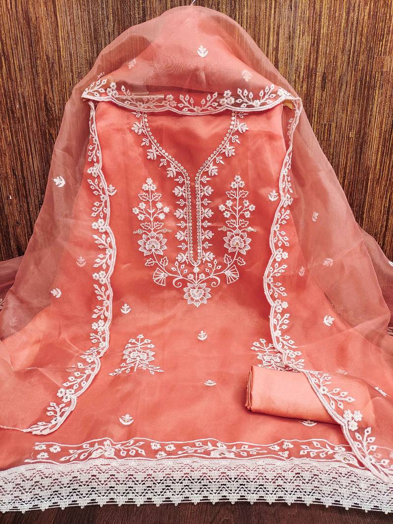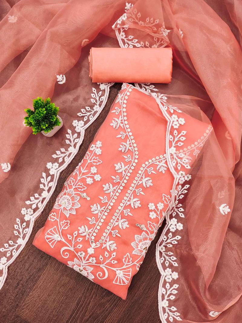 | Product Name | Peach Sequins Organza Semi Stitched Churidar Dress Materials | |