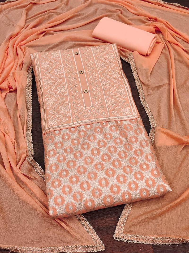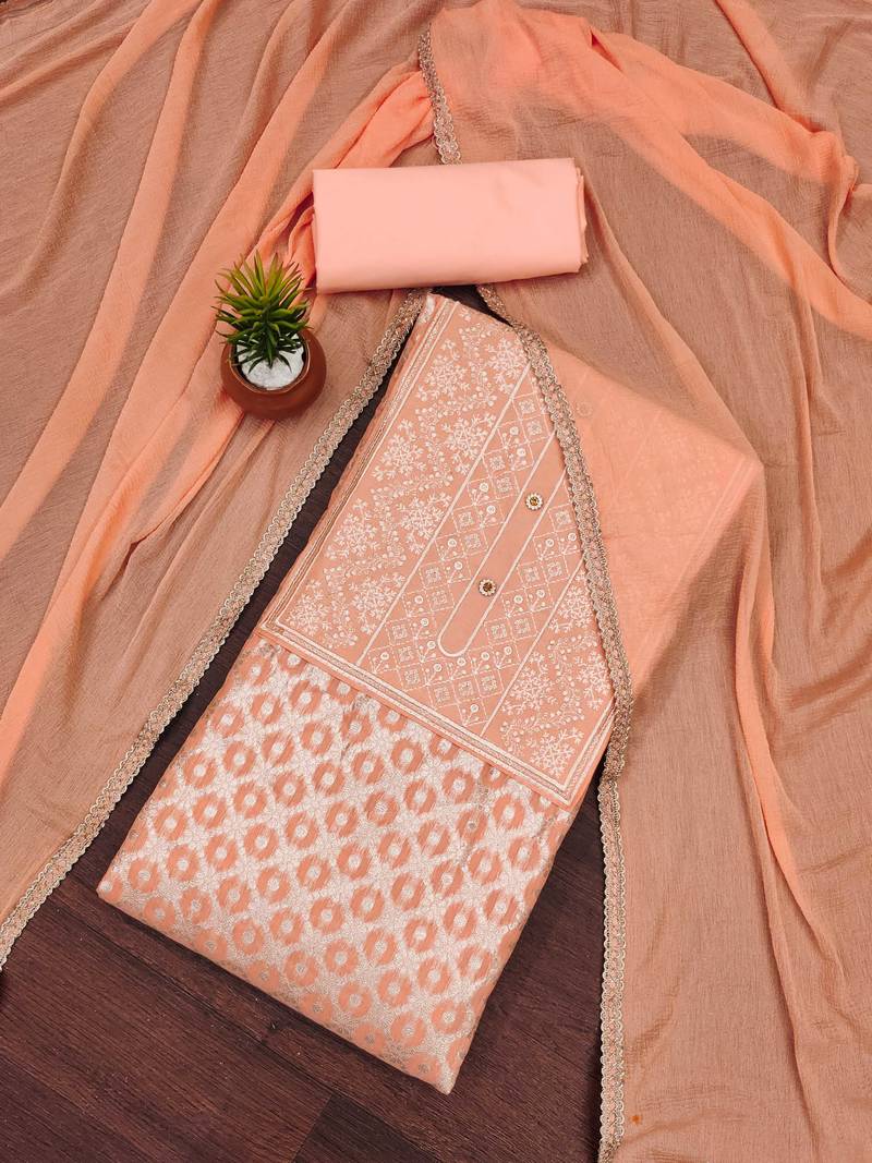 | Product Name | Peach Woven Jacquard Unstitched Churidar Dress Materials | |