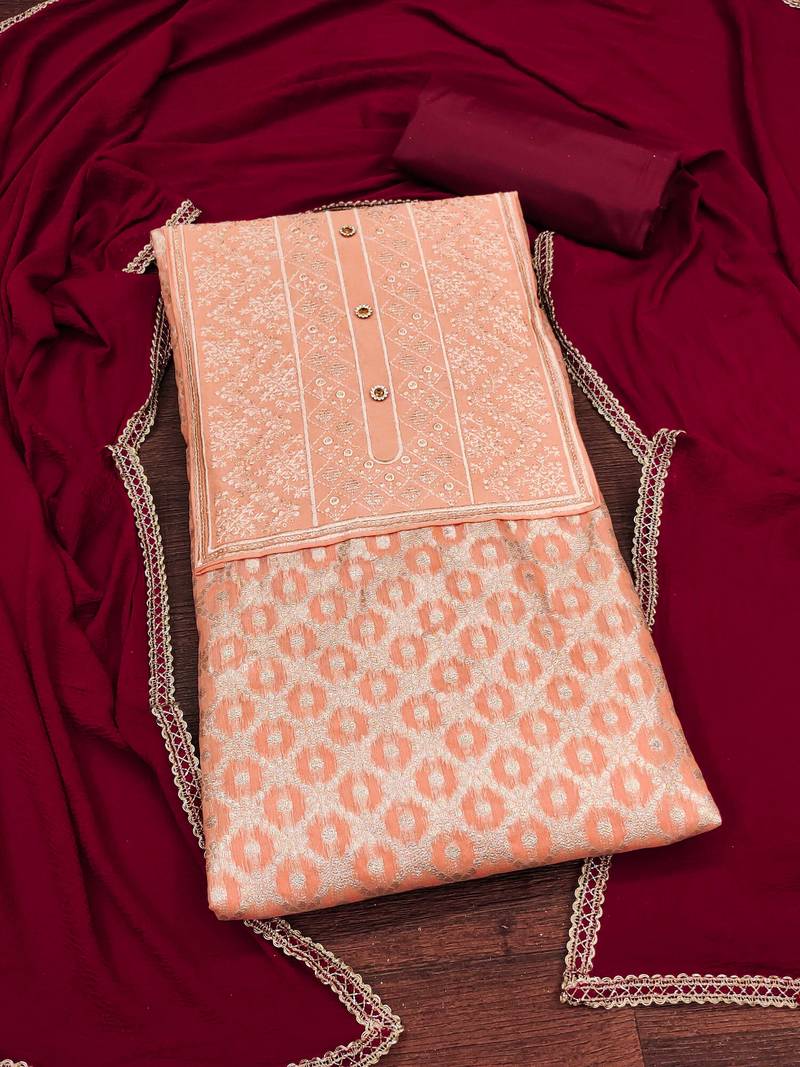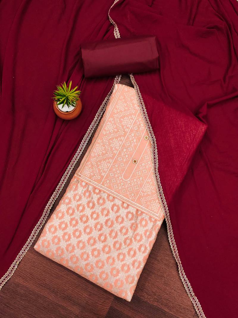 | Product Name | Peach Woven Jacquard Unstitched Churidar Dress Materials | |
