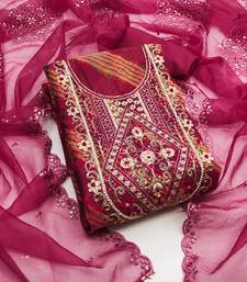 Pink color hand work heavy organza straight churidar dress material semi stitched