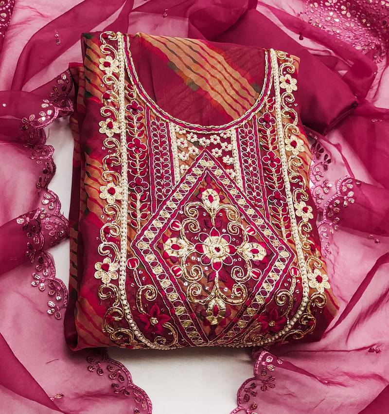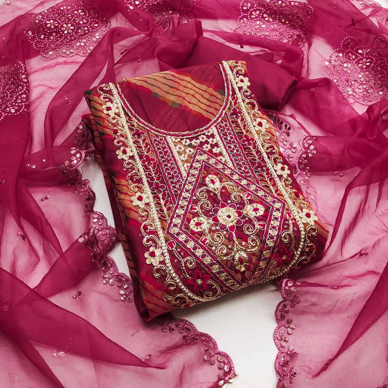 | Product Description | Stylish Stylish Handwork, Designer Digital Print And Fancy Border With Heavy Embroidered Dupatta Work Straight Style 2.15 Mtr Unstitched Dress Material Top Of Pink Colour Heavy Organja Fabric With 2 Mtr Heavy Santoon As Lining Inner Fabric Also Including 3.80 Mtr Unstiched Bottom Material Of Pink Colour Heavy Santoon Fabric With 2.15 Mtr Dupatta Of Magenta Colour Heavy Organja Fabric By Shadow & Saining Brand |
