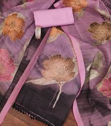 Pink color printed heavy organza straight churidar dress material semi stitched