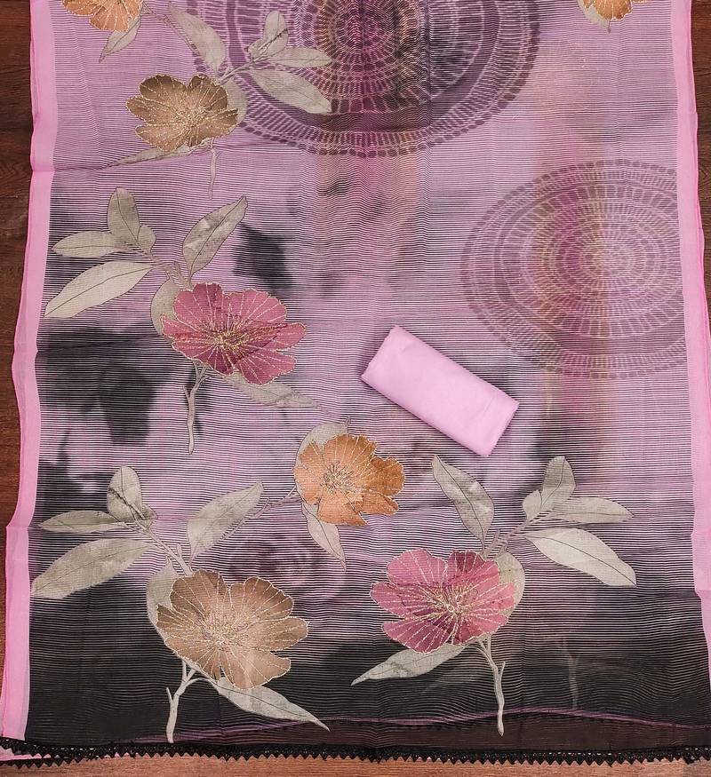 | Product Name | Pink Color Printed Heavy Organza Straight Churidar Dress Material | |