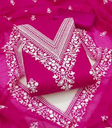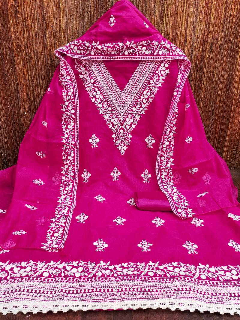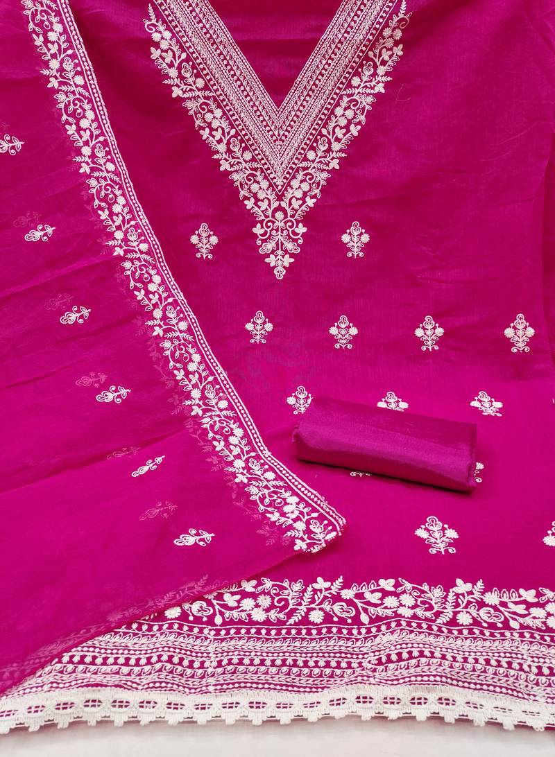 Exclusive Heavy Thread Embroidered And Fancy Border With Designer Embroidered Dupatta Straight Style 1.80 Mtr Unstitched Dress Material Top Of Pink Colour Chanderi Cotton Fabric With 2 Mtr Santoon As Lining Inner Fabric Also Including 3.60 Mtr Unstiched Bottom Material Of Pink Colour Santoon Fabric With 2.10 Mtr Dupatta Of Pink Colour Chanderi Cotton Fabric By Shadow & Saining Brand