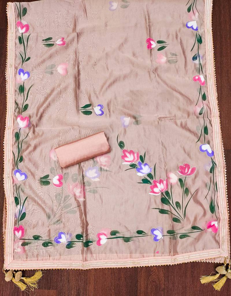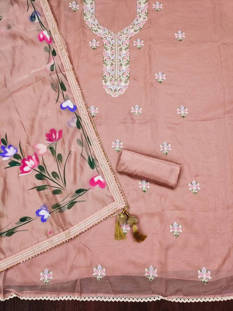 | Product Name | Pink Embroidered Organza Semi Stitched Churidar Dress Materials | |